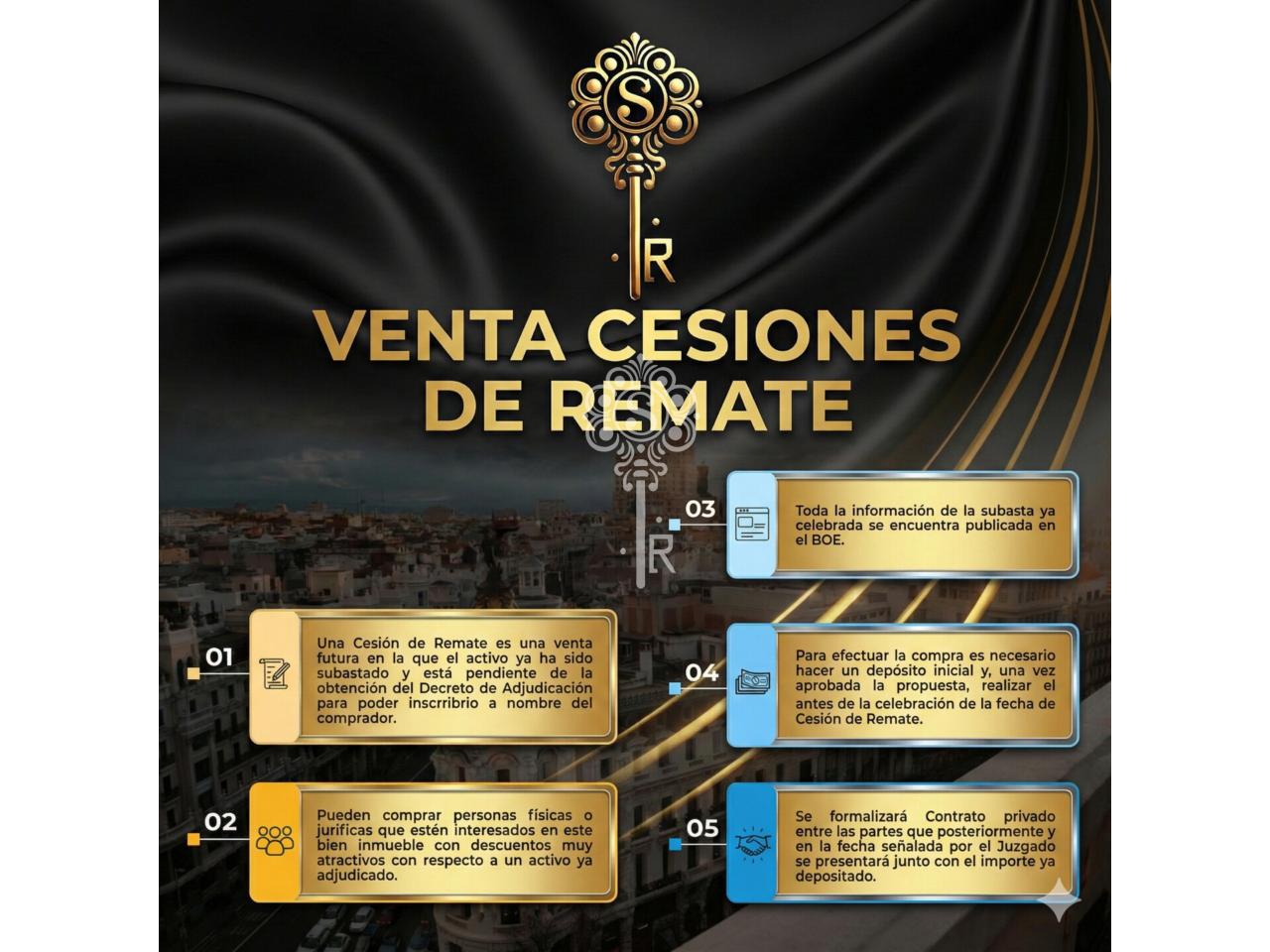 ?? INFORMACIÓN JURÍDICA Y CONDICIONES ESPECIALES: Este inmueble se comercializa en régimen de CESIÓN DE REMATE. Debido a su situación jurídica, la compraventa tiene las siguientes características de obligado cumplimiento: